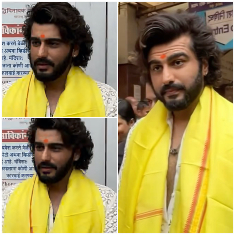 आज 1 नवंबर अपनी फिल्म 'सिंघम अगेन' की रिलीज से पहले अभिनेता अर्जुन कपूर दिव्य आशीर्वाद लेने के लिए मुंबई के सिद्धिविनायकमंदिर पहुंचे। अभिनेता का वीडियो सोशल मीडिया पर वायरल हो रहा है, जिसमें वह हाथी दांत के रंग का भारतीय परिधान पहने हुए मंदिरके अंदर जाते और दर्शन के बाद बाहर आते नजर आ रहे हैं।