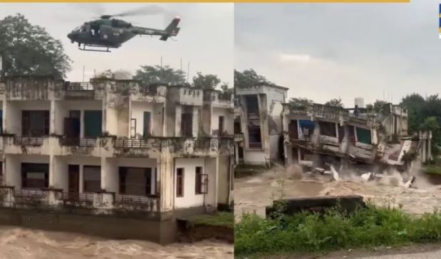 जम्मू-कश्मीर और पंजाब में इन दिनों बारिश और बाढ़ का कहर जारी है। नदियां अपने उफान पर हैं और कई इलाके जलमग्न हो चुके हैं। भारी बारिश के चलते पंजाब के माधोपुर हेडवर्क्स इलाके में एक इमारत बाढ़ के पानी में फंस गई, जिसमें CRPF के जवान और कुछ नागरिक फंसे हुए थे। हालात इतने गंभीर थे कि अगर समय रहते उन्हें न निकाला जाता, तो बड़ा हादसा हो सकता था। लेकिन भारतीय सेना ने एक जोखिम भरे हेलीकॉप्टर ऑपरेशन के जरिए सभी को सुरक्षित बाहर निकालकर एक बार फिर अपने जज़्बे और कुशलता की मिसाल पेश की है।