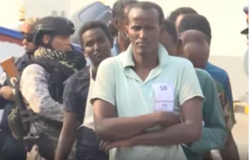 #WATCH | Maharashtra | 35 Somalian pirates handed over to Mumbai Police after due formalities of Customs and Immigration. The pirates were captured by Indian Navy’s INS Kolkata after an Anti Piracy operation on 16th March.