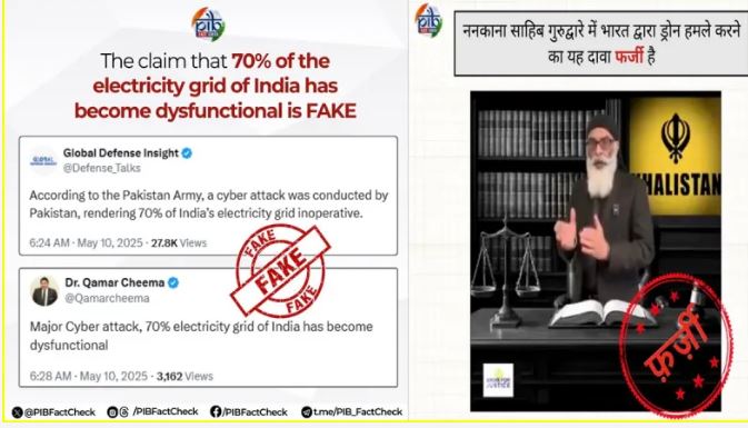 10 मई 2025 को प्रेस इन्फॉर्मेशन ब्यूरो (PIB) की फैक्ट-चेक यूनिट ने सोशल मीडिया पर फैल रही दो प्रमुख फर्जी खबरों को खारिज किया। इन खबरों में से एक दावा भारत के बिजली ग्रिड पर साइबर हमले से संबंधित था, जबकि दूसरा दावा भारत द्वारा एक गुरुद्वारे पर हमले से जुड़ा था। PIB ने इन दोनों दावों को झूठा और पूरी तरह से निराधार बताया, साथ ही नागरिकों से ऐसी अफवाहों पर विश्वास न करने की अपील की।