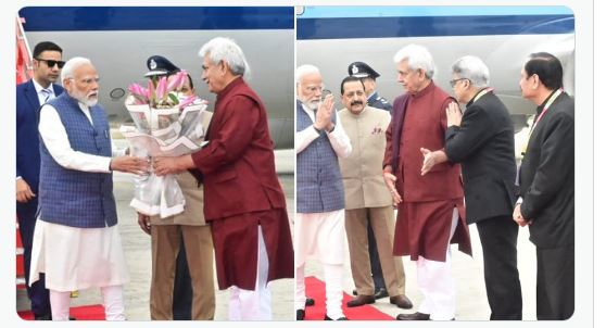 उपराज्यपाल मनोज सिन्हा ने एमए स्टेडियम में पीएम मोदी को संबोधित किया. इस दौरान एलजी ने कहा कि प्रधानमंत्री नरेंद्र मोदी के नेतृत्व में जम्मू-कश्मीर में अभूतपूर्व विकास हुआ है. अब पाकिस्तान कश्मीर में स्ट्राइक कैलेंडर जारी नहीं करता. बल्कि राज्य प्रशासन उत्साह के कैलेंडर जारी करता है. अब जम्मू एक प्रमुख शिक्षा केन्द्र के रूप में जाना जाने लगा है। जम्मू में आईआईएम जम्मू, आईआईटी जम्मू, एम्स जम्मू बने हैं। प्रधानमंत्री नरेंद्र मोदी जम्मू के एमए स्टेडियम पहुंच गए हैं. कुछ ही देर में पीएम जनता को संबोधित करेंगे. उपराज्यपाल मनोज सिन्हा, केंद्रीय मंत्री डाॅ. जितेंद्र सिंह, राज्यसभा सांसद गुलाम अली खटाना, सांसद जुगल किशोर शर्मा मौजूद हैं. जम्मू एयरपोर्ट पर एलजी मनोज सिन्हा ने प्रधानमंत्री का स्वागत किया.