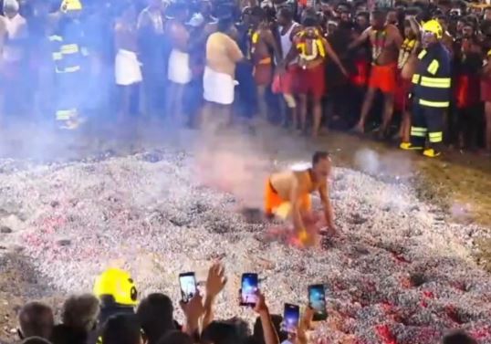 दरअसल, 10 अप्रैल से शुरू हुए थीमिधि थिरुविझा अनुष्ठाान के लिए वालंथरावाई गांव के रहने वाले केशवन भी आए थे। मन्नत पूरी करने के दौरान केशवन संतुलन खो बैठे और जलते अंगारों पर गिर पड़े। मंदिर में मौजूद बचाव दल ने उन्हें तुरंत बाहर निकाला और रामनाथपुरम जिला सरकारी अस्पताल में भर्ती कराया गया, जहां इलाज के दौरान उनकी मौत हो गई। इससे पहले भी, इसी महीने, तमिलनाडु के अवरंगाडु में अग्नि मरियम्मन मंदिर उत्सव के दौरान एक व्यक्ति अपने छह महीने के बच्चे के साथ जलते अंगारों पर चलते समय गिर पड़ा था, जिसका वीडियो भी वायरल हुआ था।