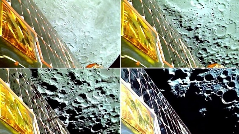 एक और मनोरम छवि में, चंद्रमा केंद्र में है, जिसे 6 अगस्त को लैंडर हॉरिजॉन्टल वेलोसिटी कैमरा (एलएचवीसी) द्वारा खूबसूरती से फ्रेम किया गया है। यह स्नैपशॉट एक अद्वितीय दृष्टिकोण से चंद्रमा की सुंदरता को दर्शाता है।इसरो ने अपने सोशल मीडिया प्लेटफॉर्म चंद्र कक्षा सम्मिलन।"लैंडर इमेजर कैमरा, अहमदाबाद, गुजरात में स्पेस एप्लिकेशन सेंटर (एसएसी) की रचना, ने पृथ्वी के मनमोहक दृश्य को कैद किया। इस बीच, चंद्रमा के जटिल विवरण को बेंगलुरु, कर्नाटक में स्थित इलेक्ट्रो-ऑप्टिक्स सिस्टम प्रयोगशाला (LEOS) द्वारा संरक्षित किया गया था।