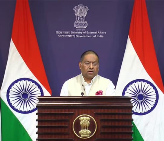 रणधीर जायसवाल ने यह भी स्पष्ट किया कि सिंधु जल संधि तब तक स्थगित रहेगी जब तक पाकिस्तान आतंकवाद को समर्थन देना बंद नहीं कर देता। उन्होंने प्रधानमंत्री के बयान को दोहराते हुए कहा कि "पानी और खून एक साथ नहीं बह सकते, व्यापार और आतंकवाद भी एक साथ नहीं चल सकते।" जम्मू-कश्मीर के किश्तवाड़ जिले में गुरुवार सुबह सिंहपोरा और छतरू इलाके में सुरक्षाबलों और आतंकियों के बीच मुठभेड़ हुई, जिसमें एक जवान घायल हो गया। इलाज के दौरान उसकी मौत हो गई। इन इलाकों में आतंकियों की तलाश अब भी जारी है। प्रवक्ता ने जोर देते हुए कहा कि भारत पर हुए आतंकी हमलों के लिए पाकिस्तान को जिम्मेदार ठहराया जाना चाहिए। आतंकवाद के सभी रूपों से निपटने के लिए वैश्विक समुदाय को एकजुट होने की आवश्यकता है। भारत इस दिशा में काम कर रहा है और 7 अंतरराष्ट्रीय प्रतिनिधिमंडल भेजे जा रहे हैं, जिनमें से तीन पहले ही रवाना हो चुके हैं। उन्होंने बताया कि भारत ने 7 मई को ‘ऑपरेशन सिंदूर’ शुरू किया था, जिसके तहत भारतीय सेनाओं ने पाकिस्तान और पाकिस्तान के कब्जे वाले कश्मीर (PoK) में स्थित 9 आतंकी ठिकानों को ध्वस्त किया। इस कार्रवाई में जैश-ए-मोहम्मद, लश्कर-ए-तैयबा और हिजबुल मुजाहिदीन के करीब 100 आतंकियों को मार गिराया गया। इसके जवाब में पाकिस्तान ने क्रॉस-बॉर्डर शेलिंग और ड्रोन हमले किए, जिसके बाद भारत ने जवाबी कार्रवाई करते हुए पाकिस्तान के 11 एयरबेसों को निशाना बनाया। 10 मई की शाम को दोनों देशों के बीच सीजफायर लागू किया गया।