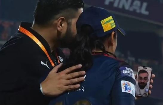 प्रेजेंटेशन समारोह से पहले, आरसीबी की कप्तान मंधाना को स्टार बल्लेबाज और पुरुष टीम के पूर्व कप्तान, विराट कोहली से एक विशेष वीडियो कॉल मिली। मंधाना और विराट कोहली के बीच बातचीत की तस्वीरें और वीडियो तेजी से विभिन्न सोशल मीडिया प्लेटफार्मों पर वायरल हो गए, जो व्यापक रूप से फैल गए। प्रशंसकों के बीच उत्साह और प्रशंसा।मामूली लक्ष्य का पीछा करते हुए आरसीबी ने अपनी पारी की शुरुआत सावधानी से की, मंधाना और डिवाइन ने 8.1 ओवर में 49 रन की मजबूत साझेदारी की।