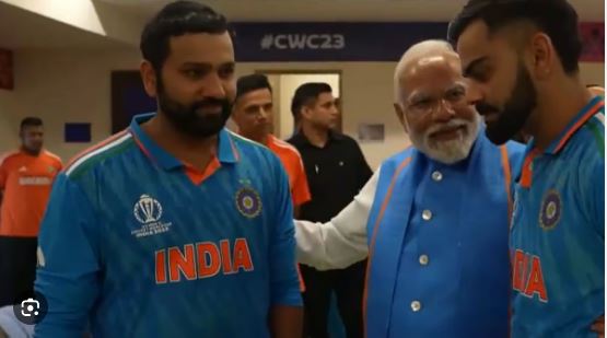 आईसीसी वनडे वर्ल्ड कप 2023 के फाइनल में टीम इंडिया को ऑस्ट्रेलिया के हाथों करारी हार का सामना करना पड़ा. भारत और ऑस्ट्रेलिया के बीच फाइनल मुकाबले में कंगारुओं ने भारत को 6 विकेट से हरा दिया. इस हार के बाद टीम इंडिया के सभी खिलाड़ी काफी निराश हुए, यहां तक कि रोहित और सिराज भी मैदान पर रोने लगे. इसके बाद देश के प्रधानमंत्री नरेंद्र मोदी ने ड्रेसिंग रूम का दौरा किया. उन्होंने विराट कोहली और रोहित शर्मा समेत पूरी टीम का हौसला बढ़ाया है, जिसका वीडियो सोशल मीडिया पर वायरल हो रहा है.
