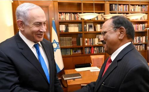 राष्ट्रीय सुरक्षा सलाहकार अजीत डोभाल ने क्षेत्रीय विकास और गाजा को मानवीय सहायता के मुद्दे को संबोधित करने की तत्काल आवश्यकता पर चर्चा करने के लिए इजरायल के प्रधान मंत्री बेंजामिन नेतन्याहू से मुलाकात की, जो खाद्य असुरक्षा के भयावह स्तर का सामना कर रहा है।इजरायली प्रधान मंत्री ने अपने आधिकारिक हैंडल से एक्स पर पोस्ट किया, "प्रधानमंत्री बेंजामिन नेतन्याहू ने आज भारतीय राष्ट्रीय सुरक्षा सलाहकार अजीत डोभाल से मुलाकात की और उन्हें गाजा पट्टी में लड़ाई के हालिया घटनाक्रम के बारे में जानकारी दी।"