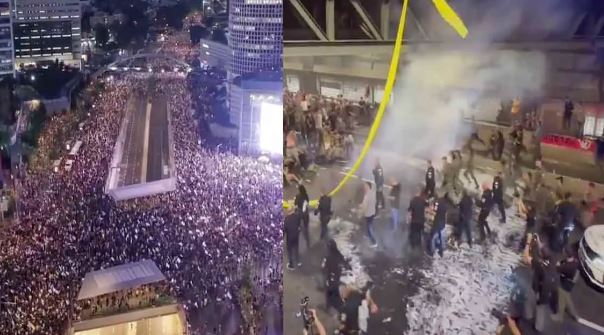 वीडियो फुटेज में दिखाया गया कि तेल अवीव का मुख्य राजमार्ग मारे गए बंधकों की तस्वीरों वाले झंडे लिए प्रदर्शनकारियों से भरा हुआ है। इज़रायली टीवी फ़ुटेज में पुलिस को सड़कों को अवरुद्ध करने वाले प्रदर्शनकारियों पर पानी की बौछारें करते हुए दिखाया गया। स्थानीय मीडिया ने 29 गिरफ्तारियों की सूचना दी। देश के श्रमिक नेताओं ने सोमवार को एक दिवसीय आम हड़ताल की घोषणा की है।