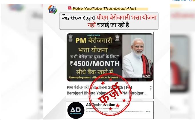 यूट्यूब चैनल 'adtechnovation' द्वारा एक वीडियो अपलोड किया गया, जिसमें बताया गया कि "पीएम बेरोजगारी भत्ता योजना" के तहत भारत सरकार सभी बेरोजगार युवाओं को हर महीने ₹4500 की आर्थिक सहायता दे रही है। इस वीडियो को कुछ ही दिनों में लाखों बार देखा गया, और कई अन्य चैनलों ने भी इसे शेयर कर दिया।