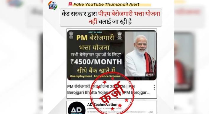 पलक झपकते ही करोड़ों लोगों तक पहुंच जाती है। लेकिन इसी ताकत का उपयोग कई बार झूठी या भ्रामक सूचनाओं को फैलाने के लिए भी किया जाता है। ऐसी ही एक गुमराह करने वाली खबर इन दिनों यूट्यूब पर वायरल हो रही है, जिसमें दावा किया जा रहा है कि भारत सरकार सभी बेरोजगार युवाओं को हर महीने ₹4500 की आर्थिक सहायता दे रही है। इस दावे को लेकर PIB फैक्ट चेक ने जब सच्चाई की पड़ताल की, तो नतीजे चौंकाने वाले निकले।