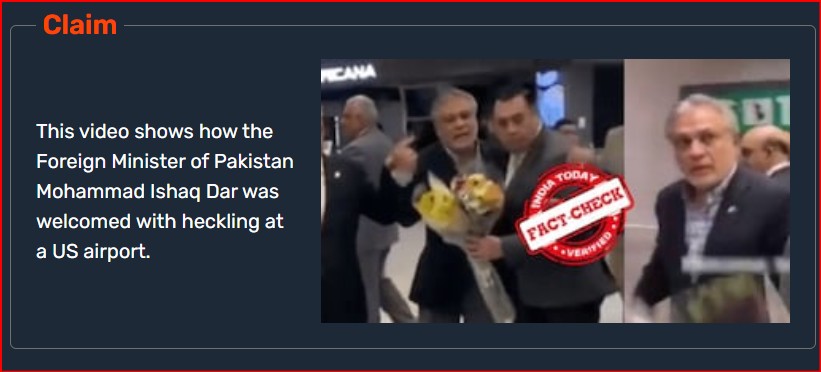 पाकिस्तान के विदेश मंत्री इशाक डार को एयरपोर्ट पर परेशान किए जाने का कथित तौर पर एक वीडियो सोशल मीडिया पर वायरल हो रहा है। डार उत्तेजित दिखाई दे रहे हैं, और उनके साथ मौजूद एक अन्य व्यक्ति ने अभद्र भाषा का प्रयोग करते हुए उन पर हमला किया। इस क्लिप को एक्स पर शेयर करते हुए, कई लोगों ने पाकिस्तानी मंत्री पर कटाक्ष करते हुए लिखा: "पाकिस्तान के विदेश मंत्री का अमेरिका में शाही स्वागत। दक्षिण एशिया के लिए गर्व का क्षण।" इसे फेसबुक और इंस्टाग्राम पर भी शेयर किया गया।