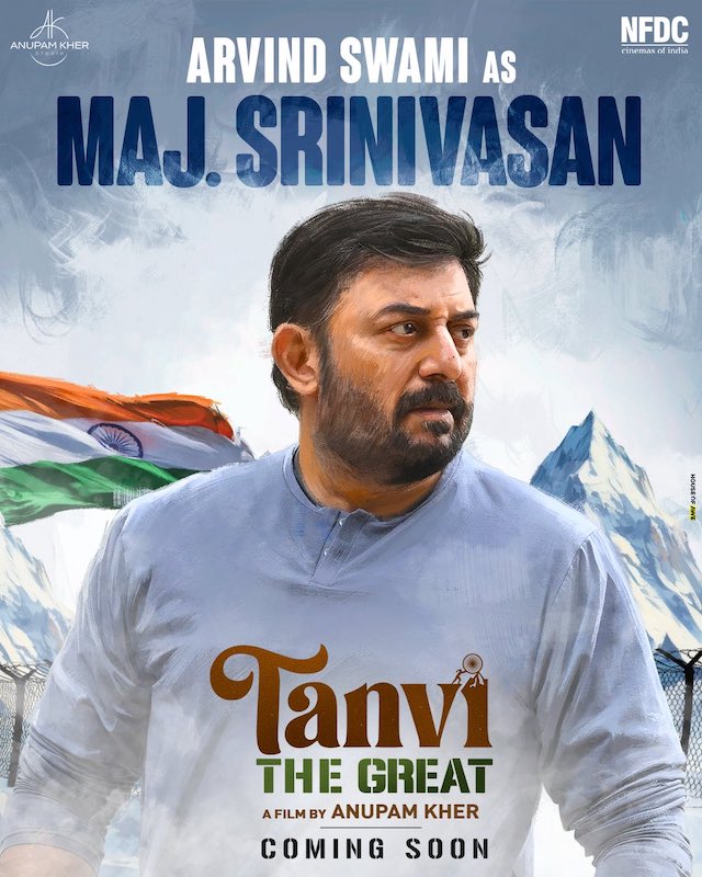 अनुपम खेर ने अपने सोशल मीडिया पर एक पोस्ट के माध्यम से ये जानकारी दी है कि एक्टर अरविंद स्वामी की फिल्म ‘तन्वी द ग्रेट’ में एंट्री हुई है।अरविंद स्वामी फिल्म में मेजर श्रीनिवासन की भूमिका निभाएंगे।
