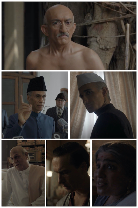 श्रृंखला में सिद्धांत गुप्ता ने जवाहरलाल नेहरू, चिराग वोहरा ने महात्मा गांधी, राजेंद्र चावला ने सरदार वल्लभभाई पटेल, आरिफ जकारिया ने मोहम्मदअली जिन्ना, इरा दुबे ने फातिमा जिन्ना, मलिष्का मेंडोंसा ने सरोजिनी नायडू, राजेश कुमार ने लियाकत अली खान, केसी शंकर ने वीपी मेनन, ल्यूकमैकगिबनी ने लॉर्ड लुईस माउंटबेटन, कॉर्डेलिया बुगेजा ने लेडी एडविना माउंटबेटन, एलिस्टेयर फिनले ने आर्चीबाल्ड वेवेल, एंड्रयू कुल्लुम ने क्लेमेंटएटली, रिचर्ड टेवरसन ने सिरिल रैडक्लिफ के किरदार अदा किए हैं।