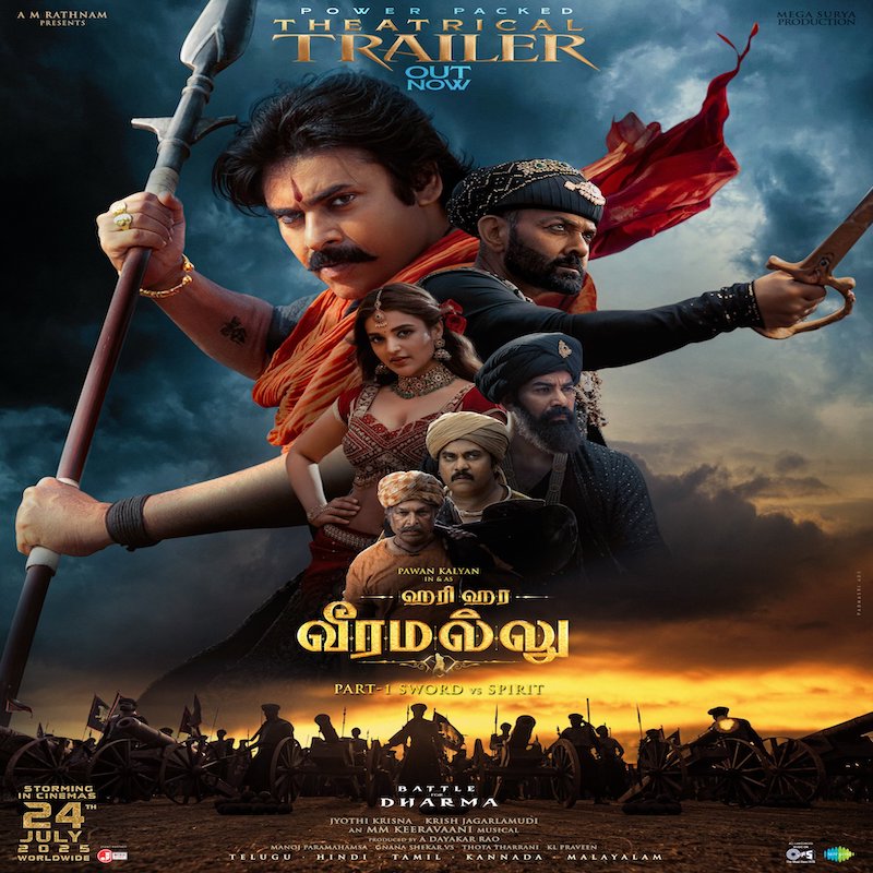 हरी हरा वीरा मल्लू: पार्ट 1 को ए. एम. रत्नम ने मेगा सूर्य प्रोडक्शन के बैनर तले प्रोड्यूस किया है, और टिप्स ऑफिशियल इसका समर्थन कर रहा है।यह फिल्म 24 जुलाई 2025 को सिनेमाघरों में रिलीज़ होगी। दमदार एक्शन, दिलचस्प कहानी और पवन कल्याण की योद्धा वाली छवि के साथ यहफिल्म भारतीय ऐतिहासिक सिनेमा में एक नई पहचान बना सकती है।