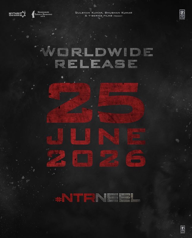जूनियर एनटीआर ने आज अपने एक्स हैंडल पर शेयर करते हुए लिखा, '25 जून 2026 को सिनेमाघरों में मिलते हैं... #एनटीआरनील'। इस आगामीअनाम फिल्म को लेकर एक पोस्ट शेयर किया, जिसमें साफ शब्दों में लिखा है, 'वर्ल्ड वाइड रिलीज, 25 जून, 2026 #NTRNEEl'