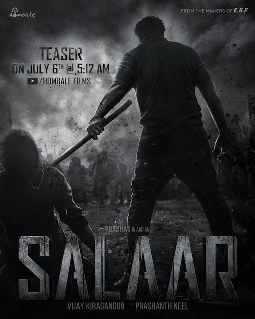 होम्बले फिल्म्स के आधिकारिक हैंडल ने एक गहरा और दिलचस्प नया पोस्टर साझा किया और ट्वीट किया, “सबसेहिंसक आदमी, #सालार के लिए खुद को तैयार रखें, 6 जुलाई को सुबह 5:12 बजे होम्बले फिल्म्स पर#SalaarTeaser देखें, #SalaarTeaserजुलाई 6 को #प्रभास #प्रशांतनील @ पृथ्वीऑफिशियल@hombalefilms #VijayKiragandur @IamJagguBhai @shrutihaasan @sdiyareddy @भुवनगौड़ा84 @RaviBasrur @shivakumarart #Chalapathi @SalaarTheSaga”
