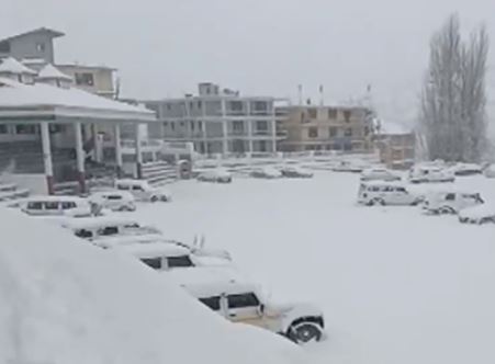 #WATCH | Himachal Pradesh: Lahaul Spiti covered in a blanket of thick snow, as the area receives heavy snowfall.