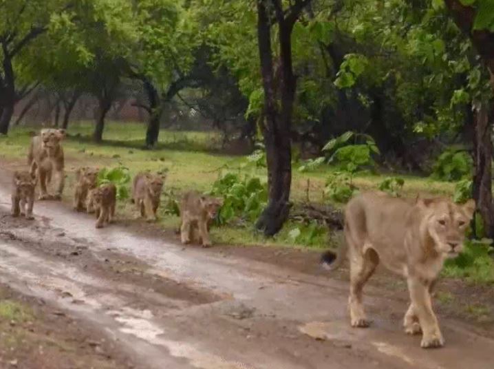 गिर-सोमनाथ में आठ शेरों के झुंड से मची दहशत, रातभर गांव में घूमते रहे ...