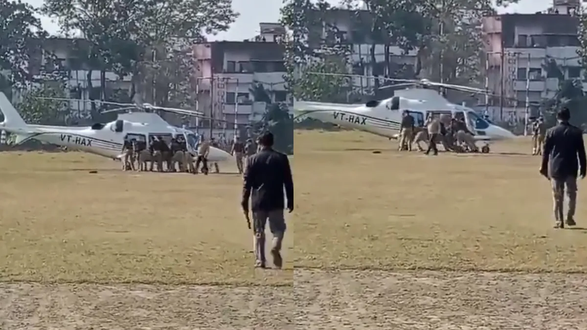 एंबुलेंस, पुलिस की गाड़ी को धक्का लगाते तो अपने बहुत बार देखा होगा लेकिन अभी हेलीकॉप्टर को धक्का लगाते किसी को देखा है।