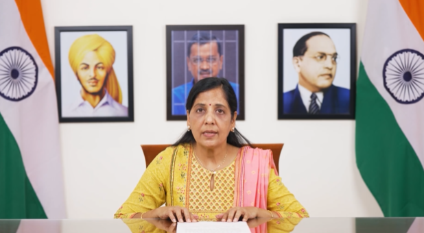 सुनीता ने वीडियो मैसेज में केजरीवाल की भगत सिंह और अंबेडरकर के साथ तस्वीर, बीजेपी ने आपत्ति जताई, जानिए पूरा मामला