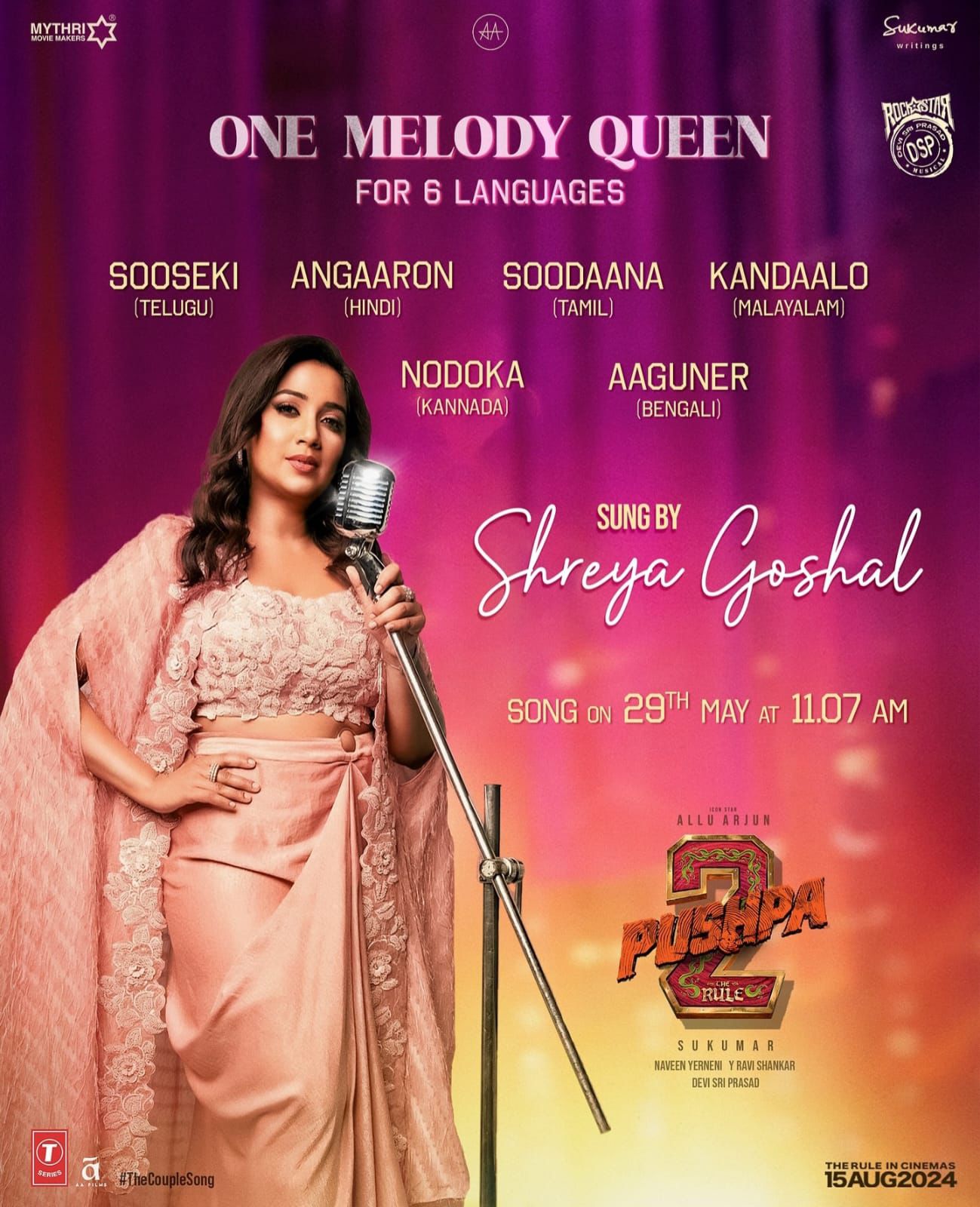मेलोडी क्वीन श्रेया घोषाल ने 6 भाषाओं में गाया है "पुष्पा 2: द रूल" का दूसरा गाना