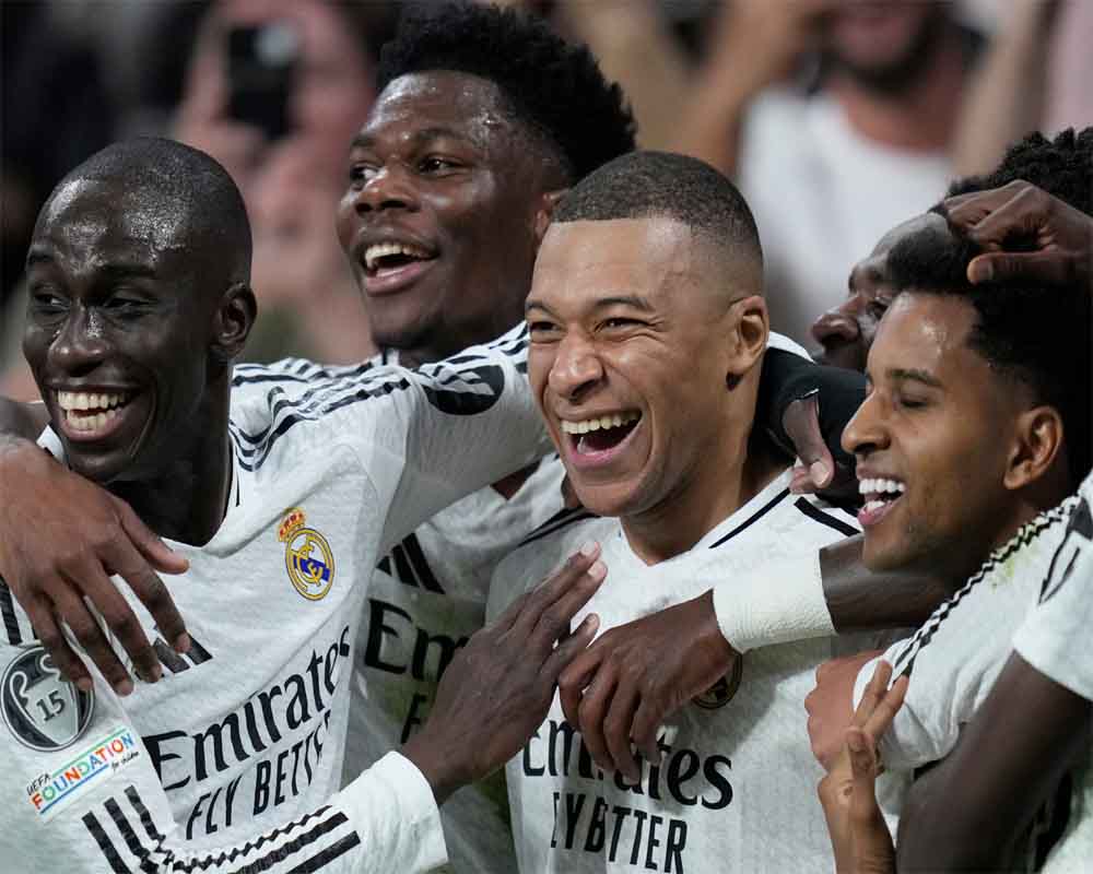 किलियन एमबाप्पे ने हैट्रिक बनाई, एरलिंग हैलैंड चोटिल होने के कारण बेंच पर बैठे रहे और रियल मैड्रिड ने बुधवार को मैनचेस्टर सिटी को चैंपियंस लीग से बाहर कर दिया। एमबाप्पे ने चौथे, 33वें और 61वें मिनट में गोल करके 3-1 की शानदार जीत दर्ज की, जिससे मैड्रिड ने अपने दो-लेग नॉकआउट प्लेऑफ में 2023 के चैंपियन पर कुल मिलाकर 6-3 से जीत हासिल की। "यह एक संपूर्ण प्रदर्शन रहा है - आक्रमण, बचाव, गेंद के साथ और गेंद के बिना, हमने बहुत उच्च स्तर की गुणवत्ता दिखाई," मैड्रिड के कोच कार्लो एंसेलोटी ने कहा। "लगभग एक बेहतरीन रात।"