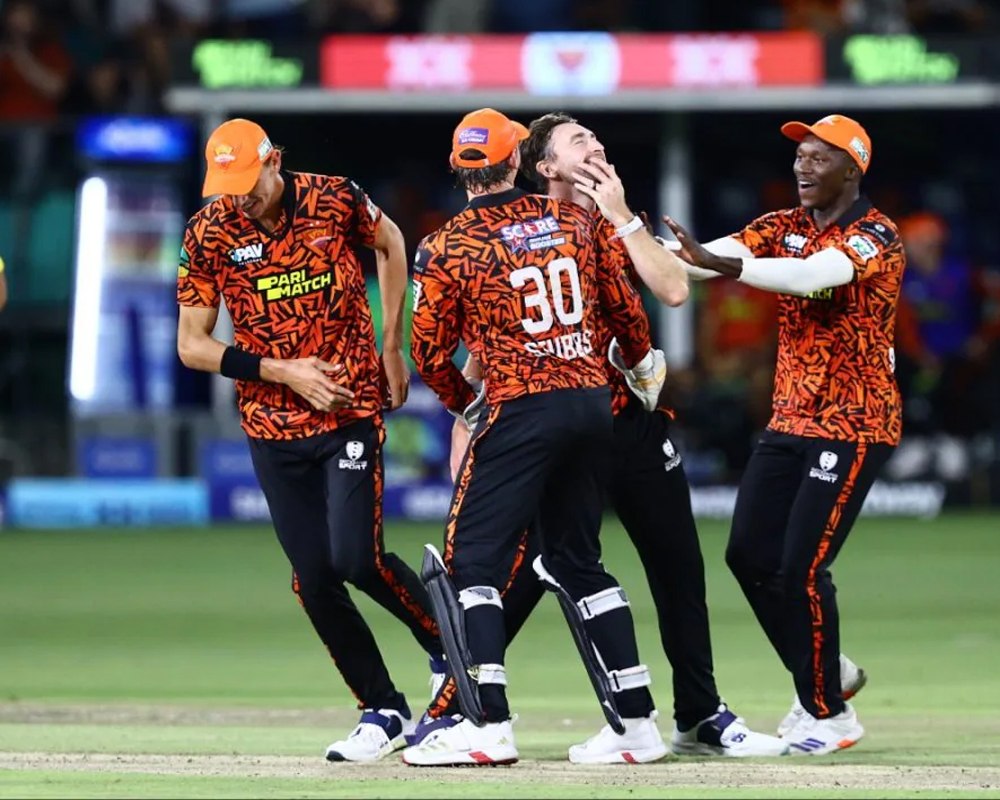 गत विजेता सनराइजर्स ईस्टर्न केप ने SA20 में जोबर्ग सुपर किंग्स को 14 रन से हराकर लगातार चौथी जीत दर्ज की। टूर्नामेंट के दोनों संस्करण जीतने वाले सनराइजर्स के 19 अंक हैं, जो तालिका में शीर्ष पर चल रहे पार्ल रॉयल्स से सिर्फ़ एक अंक कम है, जिसने एक मैच कम खेला है। जीत के लिए सनराइजर्स ने एक बार फिर अपने कप्तान एडेन मार्कराम और अपने सबसे वरिष्ठ गेंदबाज मार्को जेनसन पर भरोसा किया। मार्कराम ने 29 गेंदों पर 43 रन बनाकर अपनी टीम की पारी को संभाला, जबकि ट्रिस्टन स्टब्स ने भी 22 गेंदों पर नाबाद 35 रन बनाकर शानदार वापसी की।