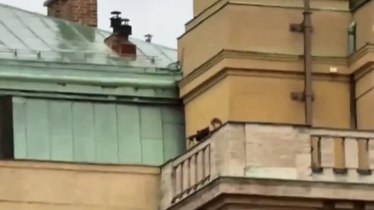 New video shows gunman shooting at people from a rooftop at Charles University’s Department of Philosphy in Prague, Czech Republic. Over 15 killed and 20 injured in the mass shooting. 10 critically injured. Shooter also killed his own father.