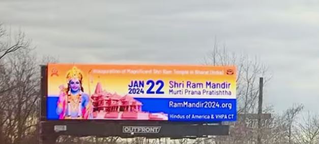 अमेरिका के 10 राज्यों में लगे राम मंदिर प्राण-प्रतिष्ठा के बिलबोर्ड्स, टाइम्स स्क्वायर पर लाइव प्रसारण