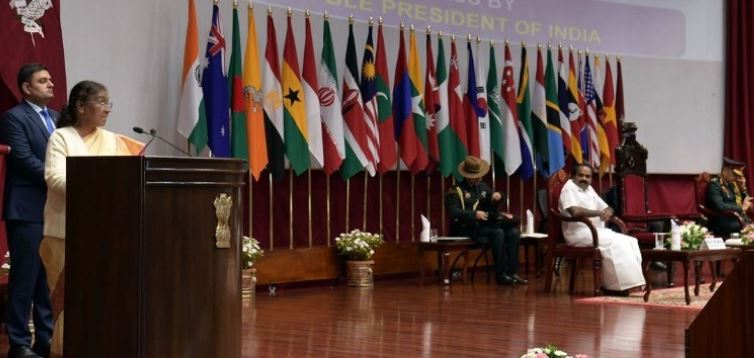 उभरते वैश्विक सुरक्षा परिदृश्य को स्वीकार करते हुए, राष्ट्रपति मुर्मू ने साइबर युद्ध, आतंकवाद और जलवायु परिवर्तन जैसी उभरती चुनौतियों से निपटने की आवश्यकता पर बल दिया। उन्होंने अधिकारियों से भूराजनीतिक गतिशीलता की अपनी समझ को गहरा करने और राष्ट्रीय हितों की रक्षा के लिए तकनीकी प्रगति को अपनाने का आग्रह किया।