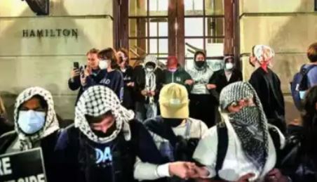 दर्जनों प्रदर्शनकारियों ने मंगलवार तड़के न्यूयॉर्क में कोलंबिया विश्वविद्यालय की एक इमारत पर कब्जा कर लिया, प्रवेश द्वारों पर बैरिकेडिंग कर दी और पूरे अमेरिका में कॉलेज परिसरों में इजरायल-हमास युद्ध के खिलाफ प्रदर्शनों की नवीनतम वृद्धि में एक खिड़की से फिलिस्तीनी झंडा फहराया। स्कूल ने वादा किया कि उन्हें निष्कासन का सामना करना पड़ेगा।