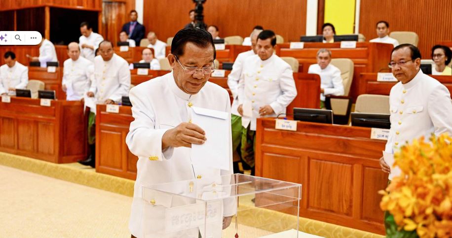 मतदान के बाद सीनेटरों को संबोधित करते हुए हुन सेन ने उन्हें "सम्मान" के लिए धन्यवाद दिया।