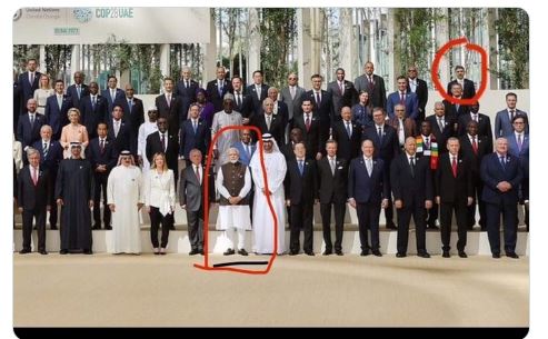 प्रधानमंत्री नरेंद्र मोदी की एक तस्वीर वायरल हो रही है. यह तस्वीर दुबई में COP28 शिखर सम्मेलन के दौरान वैश्विक नेताओं के एक फोटो सत्र की है। तस्वीर में देखा जा सकता है कि भारतीय प्रधानमंत्री नरेंद्र मोदी विश्व नेताओं के साथ पहली पंक्ति में खड़े हैं. जबकि उनके पाकिस्तानी समकक्ष आखिरी पंक्ति में खड़े हैं. यह फोटो सोशल मीडिया पर वायरल हो रही है और पाकिस्तान के लोग इस पर हैरानी जता रहे हैं. पाकिस्तानी यूजर्स अपने देश के कार्यवाहक प्रधानमंत्री अनवर उल हक कक्कड़ की हालत को देखकर तरह-तरह के मीम्स बना रहे हैं.