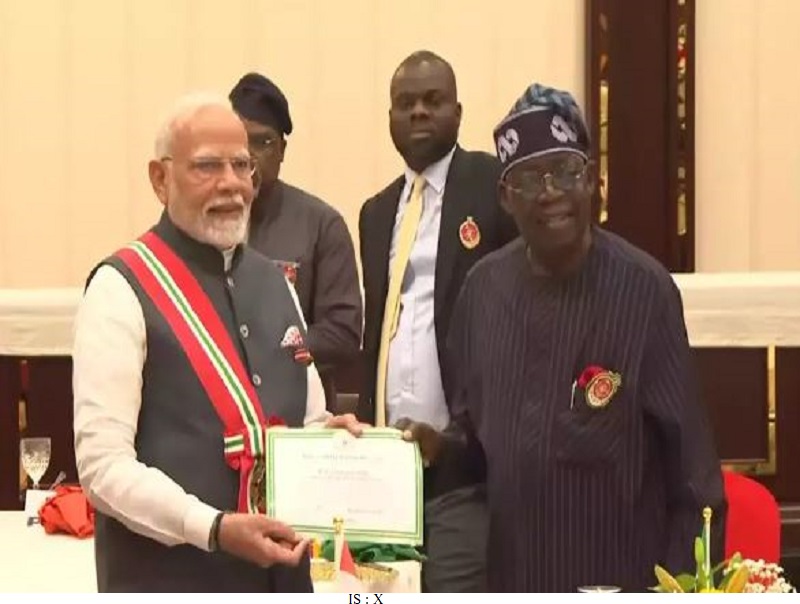 मुंबई, 17 नवंबर, (न्यूज़ हेल्पलाइन)। नाइजीरिया ने प्रधानमंत्री नरेंद्र मोदी को दूसरा सर्वोच्च राष्ट्रीय सम्मान 'द ग्रैंड कमांडर ऑफ द ऑर्डर ऑफ द नाइजर' से नवाजा है। रविवार को नाइजीरियाई राष्ट्रपति बोला अहमद टिनूबू ने पीएम मोदी को सम्मानित किया। पीएम मोदी ने इस सम्मान को भारत-नाइजीरिया के रिश्तों को समर्पित किया। इस मौके पर पीएम मोदी ने कहा, 'मैं नाइजीरिया के राष्ट्रीय सम्मान के लिए नाइजीरिया सरकार और नाइजीरिया की जनता का दिल से आभार व्यक्त करता हूं। यह सम्मान मैं 140 करोड़ भारतीयों और भारत-नाइजीरिया की गहरी मित्रता को समर्पित करता हूं। यह अवॉर्ड दोनों देशों के बीच स्ट्रैटेजिक पार्टनरशिप को आगे बढ़ाने के लिए प्रेरित करता रहेगा। प्रधानमंत्री मोदी नाइजीरिया के दो दिवसीय दौरे पर हैं। आज उनके दौरे का आखिरी दिन है। उन्होंने रविवार सुबह नाइजीरिया के राष्ट्रपति के साथ राष्ट्रपति भवन में बैठक की थी। दोनों के बीच द्विपक्षीय संबंधों को और मजबूत करने पर चर्चा हुई। मुलाकात के दौरान पीएम मोदी ने कहा था, 'नाइजीरिया में रह रहे 60 हजार से ज्यादा भारतीय दोनों देशों के बीच मजबूत कड़ी हैं। उन्हें संभाल कर रखने और देखभाल करने के लिए मैं नाइजीरिया का धन्यवाद करता हूं।'