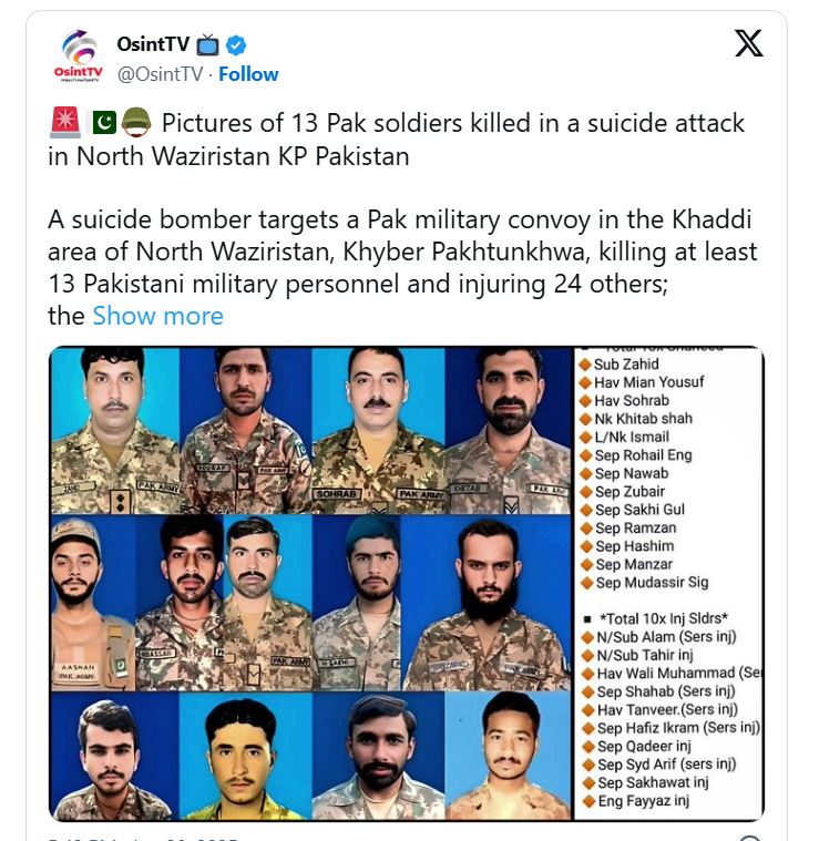 पाकिस्तान में TTP का आत्मघाती हमला, 13 सैनिक मारे गए, जानिए पूरा मामला