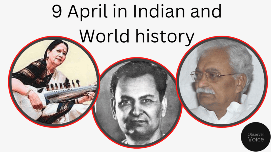 आइए जानते हैं 9 अप्रैल के दिन इतिहास में घटित कुछ अहम घटनाएं, जिन्होंने न केवल अपने समय में बल्कि आने वाली पीढ़ियों को भी प्रभावित किया।