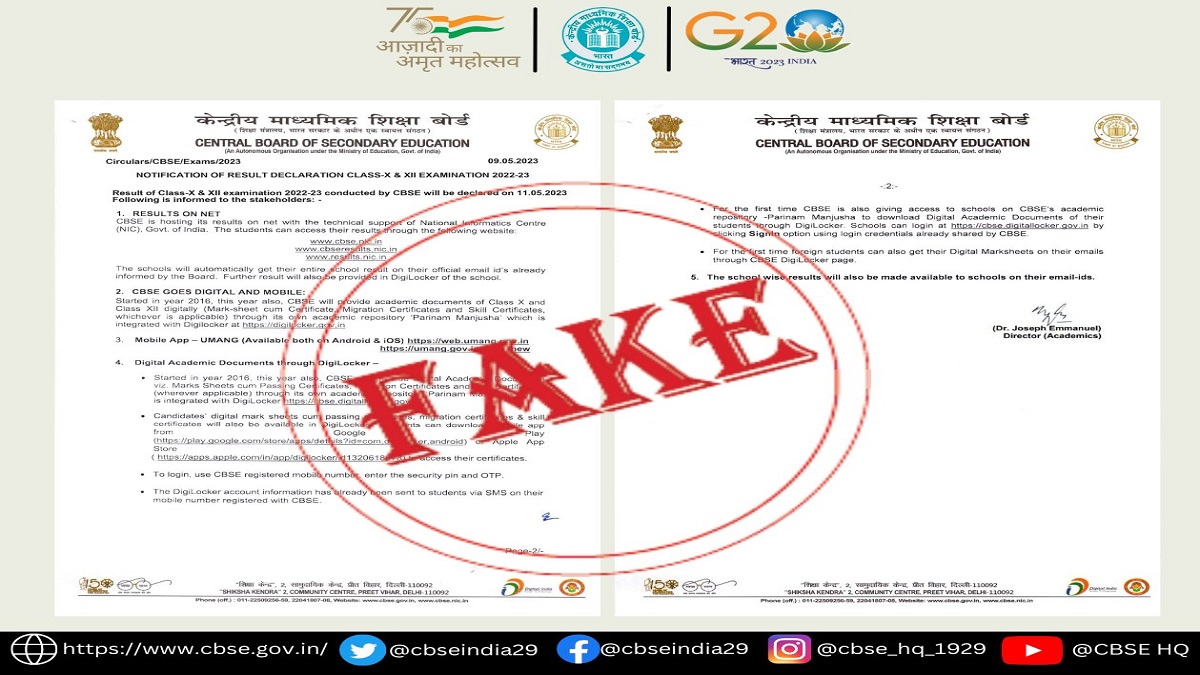 सीबीएसई परिणाम 2023 फर्जी सूचना: छात्र आधिकारिक घोषणा का इंतजार कर रहे हैं और परिणाम घोषित होने के बाद वे सीबीएसई की आधिकारिक वेबसाइट cbse.gov.in पर जाकर अपना परिणाम देख सकेंगे। उम्मीद है कि सीबीएसई बोर्ड कक्षा 10 और 12 मई के महीने में परिणाम 2023 घोषित किया जाएगा। छात्र परिणाम के संबंध में किसी भी नवीनतम अपडेट के लिए आधिकारिक वेबसाइट पर नजर रखें।