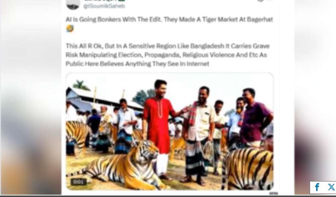 “AI पूरी तरह बेकाबू हो गया है एडिटिंग के मामले में। इन्होंने बाघों का मार्केट ही बना डाला! बांग्लादेश जैसे संवेदनशील देश में ऐसी चीजें चुनाव और धार्मिक हिंसा भड़काने का माध्यम बन सकती हैं।”