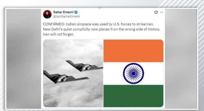 "पुष्टि: ईरान पर हमला करने के लिए अमेरिकी सेना ने भारतीय हवाई क्षेत्र का इस्तेमाल किया था। नई दिल्ली की चुपचाप की गई मिलीभगत अब उसे इतिहास के गलत पक्ष में ले गई है। ईरान इसे कभी नहीं भूलेगा।"