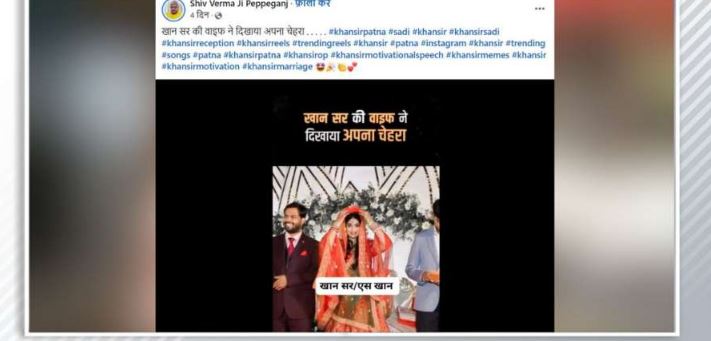 सोशल मीडिया पर एक वीडियो काफी तेजी से वायरल हो रहा है जिसमें यह दावा किया गया है कि खान सर की पत्नी ने रिसेप्शन के दौरान घूंघट उठाकर अपना चेहरा दिखाया। इस वीडियो को फेसबुक, यूट्यूब, इंस्टाग्राम और X (पूर्व में ट्विटर) जैसे प्लेटफॉर्म्स पर हजारों बार शेयर किया गया है।