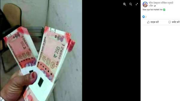 सोशल मीडिया प्लेटफॉर्म फेसबुक पर पंडित देशकुमार कौशिक मनुवादी नाम के यूजर ने 10 मार्च 2025 को एक तस्वीर शेयर करते हुए लिखा, 'बाजार में नया आया है,' जिसमें 350 रुपये के नोटों के साथ दो बंडल नजर आ रहे हैं। वहीं, एक अन्य यूजर ने 8 मार्च 2025 को फेसबुक पर इसी दावे के साथ वायरल तस्वीर शेयर की है।