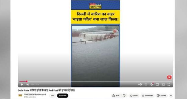 वायरल वीडियो में देखा जा सकता है कि लाल किले के आस-पास सड़कें पानी से लबालब भरी हैं, और एक हिस्से में तो ऐसा लग रहा है मानो कोई झरना बह रहा हो। इस वीडियो के साथ सोशल मीडिया यूज़र्स दावा कर रहे हैं कि “देखिए दिल्ली की क्या हालत हो गई है, लाल किले के पास नदी बह रही है।”