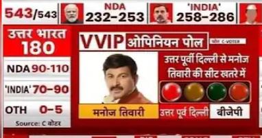 सोशल मीडिया पर दावा किया जा रहा है कि लोकसभा चुनाव 2024 में इंडिया अलायंस को 258 से 286 सीटें मिलेंगी। स्क्रीनशॉट को एक न्यूज चैनल का कथित सर्वे बताकर शेयर किया जा रहा है। कहा गया है कि चुनाव में भारतीय जनता पार्टी को 258 से 286 सीटें मिल सकती हैं, जबकि एनडीए को 232 से 253 सीटें मिलेंगी. स्क्रीनशॉट में यह भी कहा गया है कि उत्तर पूर्वी दिल्ली से बीजेपी नेता मनोज तिवारी को भी कम वोट मिले हैं और उनकी सीट खतरे में है.