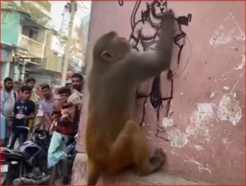 वायरल वीडियो में एक बंदर को दीवार पर एकाग्रता से स्केच बनाते हुए देखा जा सकता है। वीडियो के बैकग्राउंड में कुछ लोगों की बातचीत भी सुनाई देती है, जिसमें वे अचंभित होकर कहते हैं कि बंदर हनुमान जी की आकृति बना रहा है और मुकुट भी एकदम सटीक बना है। वीडियो को शेयर करने वाले यूज़र्स ने इसे दैवीय हस्तक्षेप बताया और देखते ही देखते यह सोशल मीडिया पर वायरल हो गया।