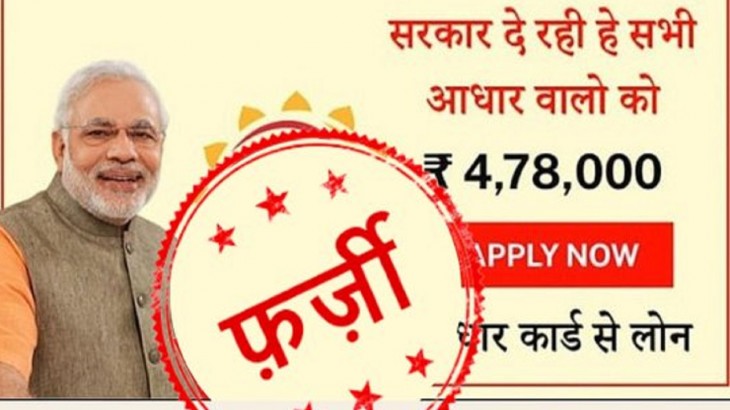 सोशल मीडिया पर एक मैसेज तेजी से वायरल हो रहा है। इस मैसेज में दावा किया जा रहा है कि केंद्र सरकार की योजना के तहत आधार कार्ड धारकों को 4,78,000 रुपये का कर्ज मुहैया कराया जाएगा. इसके लिए टास्क मैसेज तैयार किया गया है । आपकी जानकारी के लिए बता दें​ कि, इसे सोशल मीडिया साइट्स पर शेयर किया गया है। मैसेज में कहा गया है कि, हर आधार कार्ड धारक को 4,78,000 रुपये का कर्ज दिया जाएगा ।