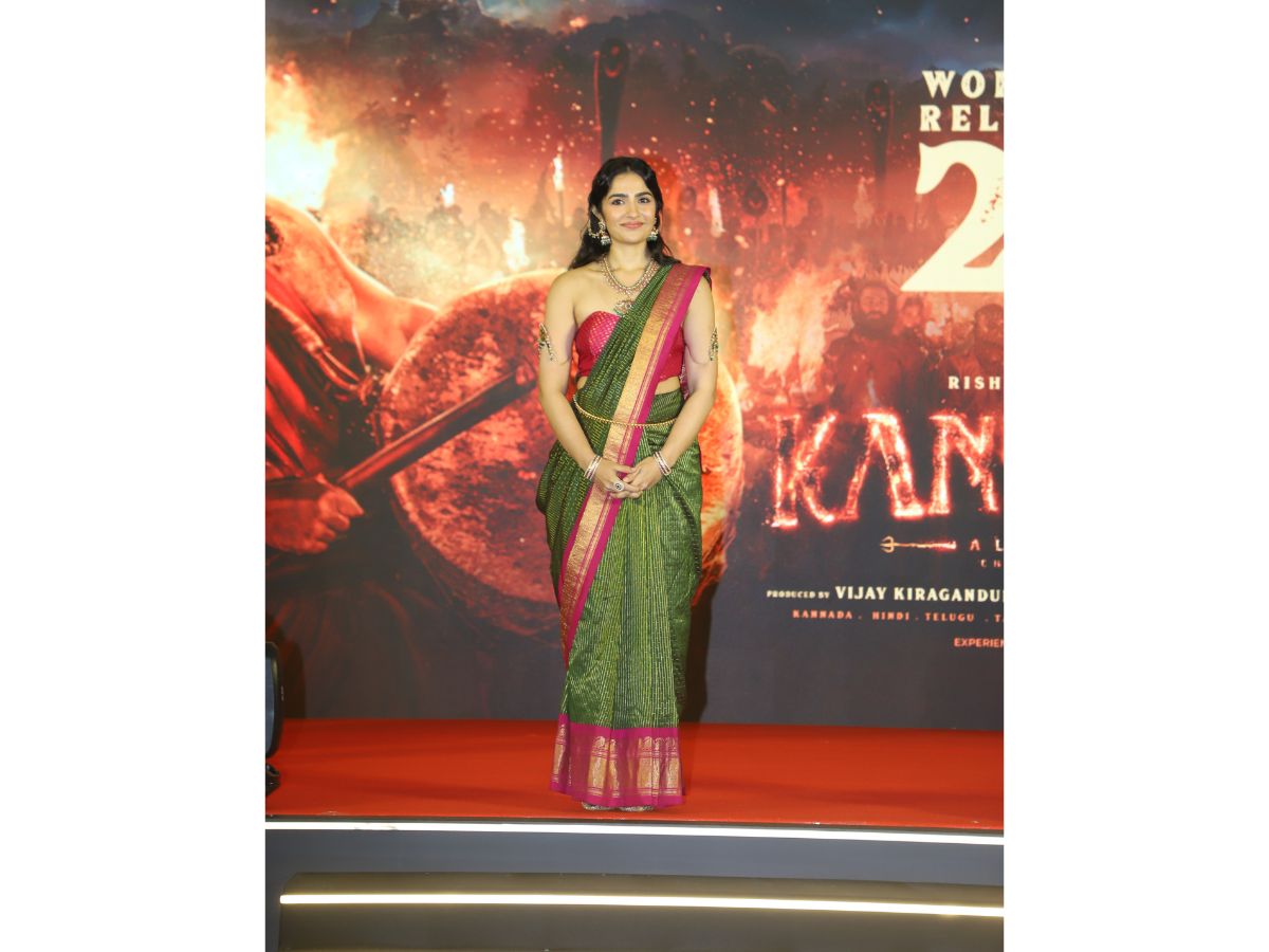 Rishab Shetty, Rukmini Vasanth, Pragathi Shetty Grace The Press Meet Of Kantara %3A Chapter 1